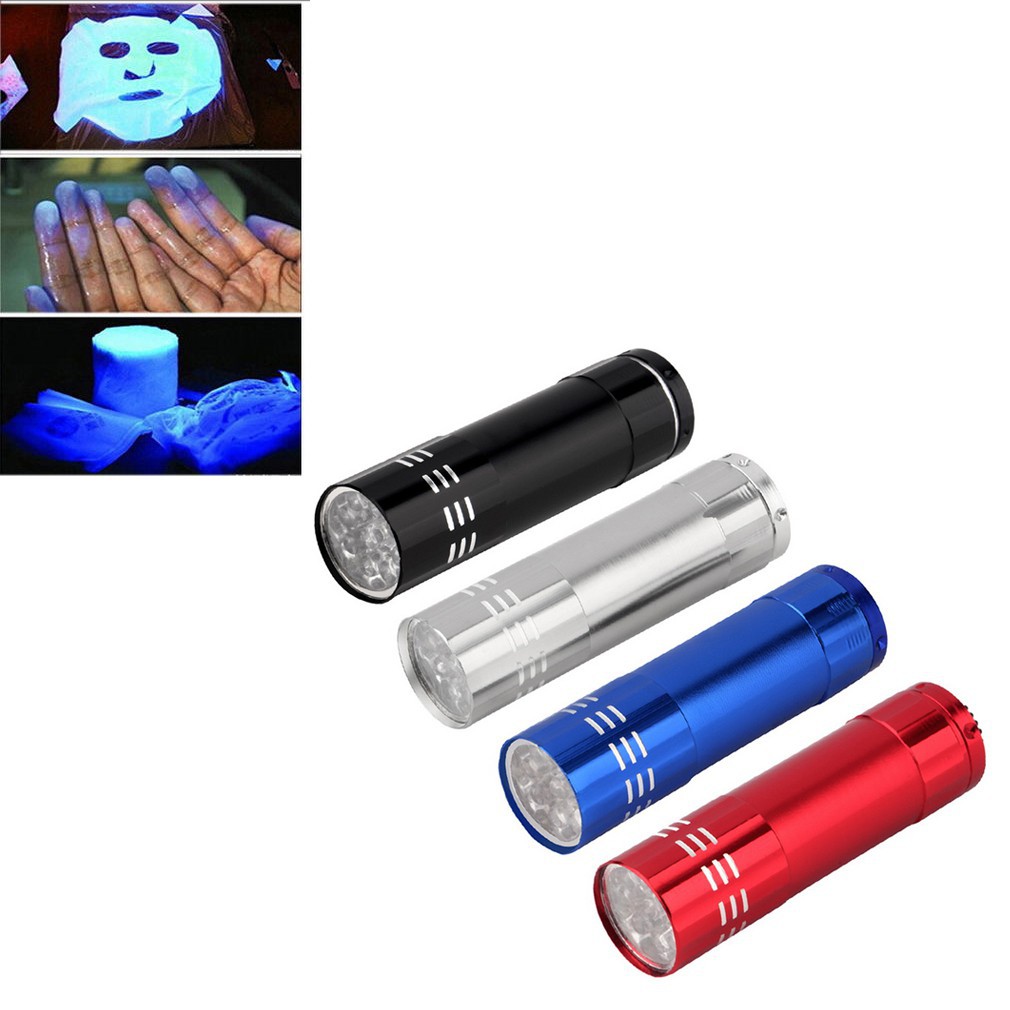 Tính năng, đặc điểm: 100% mới, chất lượng cao!! 9 bóng đèn LED UV, tiêu thụ điện năng thấp, siêu sáng, có thể nhìn thấy trong một khoảng cách dài Thân máy bằng nhôm làm cho sản phẩm có trọng lượng nhẹ và di động. Có tuổi thọ lên tới 10.000 giờ. Hoàn hảo để đi cắm trại, ngoài trời, xung quanh nhà và nhiều mục đích sử dụng khác. Tuyệt vời để kiểm tra ghi chú, thẻ tín dụng, mực huỳnh quang (mực vô hình), thủy tinh nứt, hoặc thậm chí là hiện trường vụ án. Thông số kỹ thuật: Vật liệu cơ thể: Nhôm Loại công tắc: Nhấn, nhấn từ nắp sau Màu cơ thể: Đen, Bạc, Xanh dương, Đỏ Loại bóng đèn: UV Điện áp hoạt động: 4,5V Số lượng đèn LED: 9 Loại pin: 3 x pin AAA kiềm (không bao gồm) Kích thước: khoảng. 8 x 2,3cm / 3,1 inch x 0,9 inch Trọng lượng tịnh: 22g (không bao gồm pin) Gói hàng bao gồm: Đèn pin nhôm 9 bóng LED