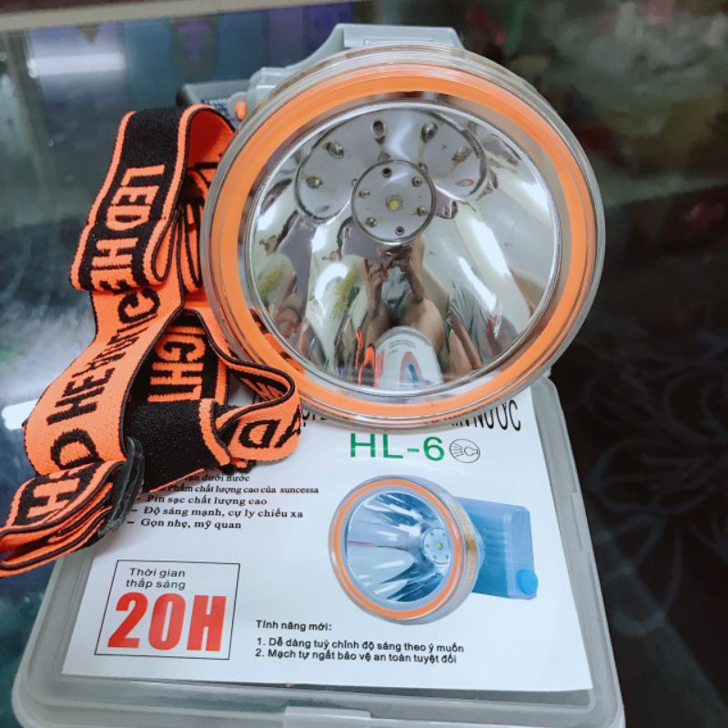 Đèn pin led sạc đội đầu LẶN sâu 50M 3 chế độ sáng cao cấp HL6 ( CHÓA 8 CM )