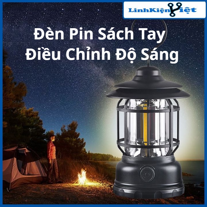 Giới thiệu Đèn pin sách tay điều chỉnh độ sáng để bàn dùng cắm trại có móc treo đèn báo bão