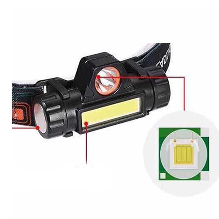 Đèn pin siêu sáng - Đèn pin led đội đầu T101 3 chế độ sáng kim 2 bóng led , loại pin sạc mẫu mới hiện đại nhất 2019 Đèn pin siêu sáng - Đèn pin led đội đầu B6 3 chế độ sáng kim 2 bóng led , loại pin sạc mẫu mới hiện đại nhất 2019Thông số:Chất liệu:ABS LED Model:1 * XPE + 1 * COB Cường độ ánh sáng:180lm (COB), 100lm (XPE) Màu Sắc ánh sáng:Màu trắng Chế Độ chiếu sáng:Bấm 1 lần để bật XPE LED, hai lần để bật LED COB Tích hợp pin 18650 Đầu đèn Kích thước:8.2 cm * 2.5 cm * 4.4 cm Trọng lượng:87g Hoạt động:Bấm 1 lần để bật XPE LED, nhấn vào vô cấp Dimming để điều chỉnh độ sáng Bấm một lần nữa để bật LED COB, nhấn vào vô cấp Dimming để điều chỉnh độ sáng Sau đó bấm tắt đèn pha Này đèn pha là thích hợp cho cắm trại, tuần tra, săn bắn, đi bộ đường dài, đi tìm kiếm, câu cá ban đêm hoặc chiếu sáng khẩn cấp. Một nút hoạt động là convinence, với chùm cao và Chùm thấp chế độ chiếu sáng, hỗ trợ cho vô cấp Dimming.