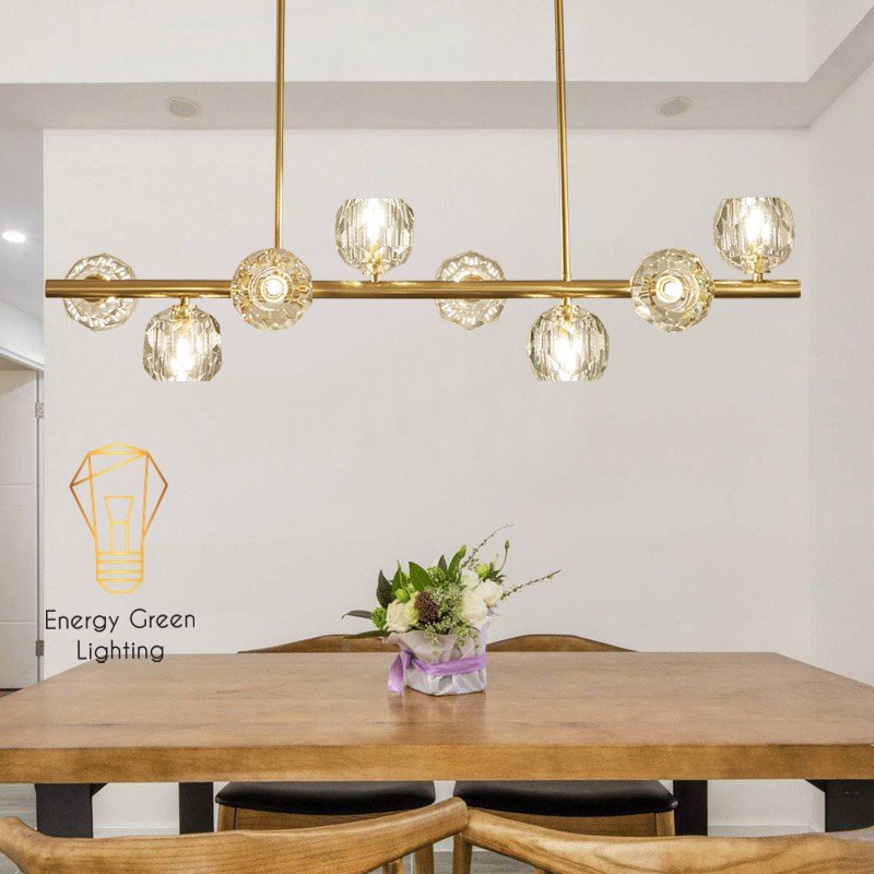 🔶Để không gian phòng khách, phòng ăn của gia đình trở nên lung linh và ấm áp hơn thì hiện nay, rất nhiều người đã nhờ đến sự trợ giúp của những mẫu đèn trang trí. Với mỗi không gian khác nhau thì việc lựa chọn đèn trang trí là không giống nhau bởi bạn cần lựa chọn sao cho phù hợp với không gian cũng như đảm bảo được khả năng chiếu sáng cần thiết cho quá trình sinh hoạt. ------------------------- ✅ Mô Tả Sản Phẩm : - Mã sản phẩm : DGT-9400 - Điện áp : 220v - Kích thước : + Chiều dài từ đế xuống đèn 60cm ( có thể điều chỉnh xuống 30cm ) + Đường kính toàn bộ đèn : 100cm + Đường kính chao đèn : 7cm + Kích thước đế đèn : 50 x 5 x 2cm - Chất liệu : Kim loại sơn tĩnh điện mạ đồng chống gỉ , chống oxi hóa + t hủy tinh - Diện tích chiếu sáng :15 -25m2 - Chao đèn bằng thủy tinh pha lê cao cấp, bề mặt cắt gọt tỉ mỉ, rõ ràng, ánh sáng truyền đồng đều không chói mắt, hiệu ứng ánh sáng khúc xạ đa góc.