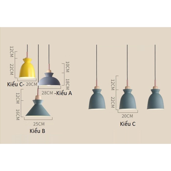 Giới thiệu Đèn thả trần chao nhôm đuôi gỗ kiểu A,B,C, đèn thả trần trang trí