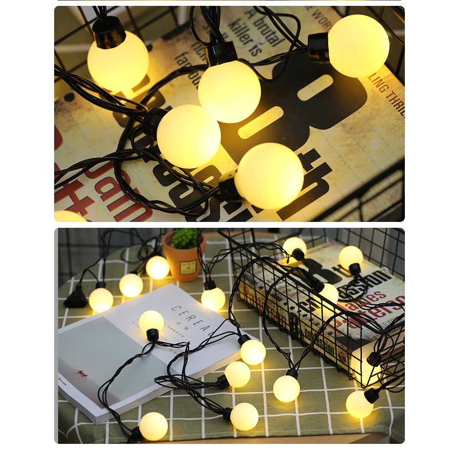 Dây dài 5m Sử dụng điện 220V Bóng nhẵn, mịn. Ánh sáng đẹp , SÁNG ẤM Dây đèn chống nước DÙNG ĐƯỢC NGOÀI TRỜI trang trí không gian quán cafe vintage đáng yêu cực kỳ dây có đầu cắm nối tiếp Thiết kế tinh xảo, phù hợp trang trí và background chụp hình Xuất xứ: Trung Quốc