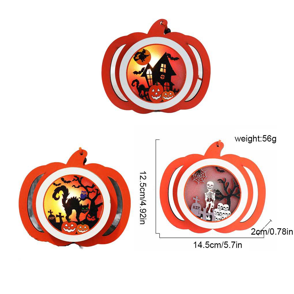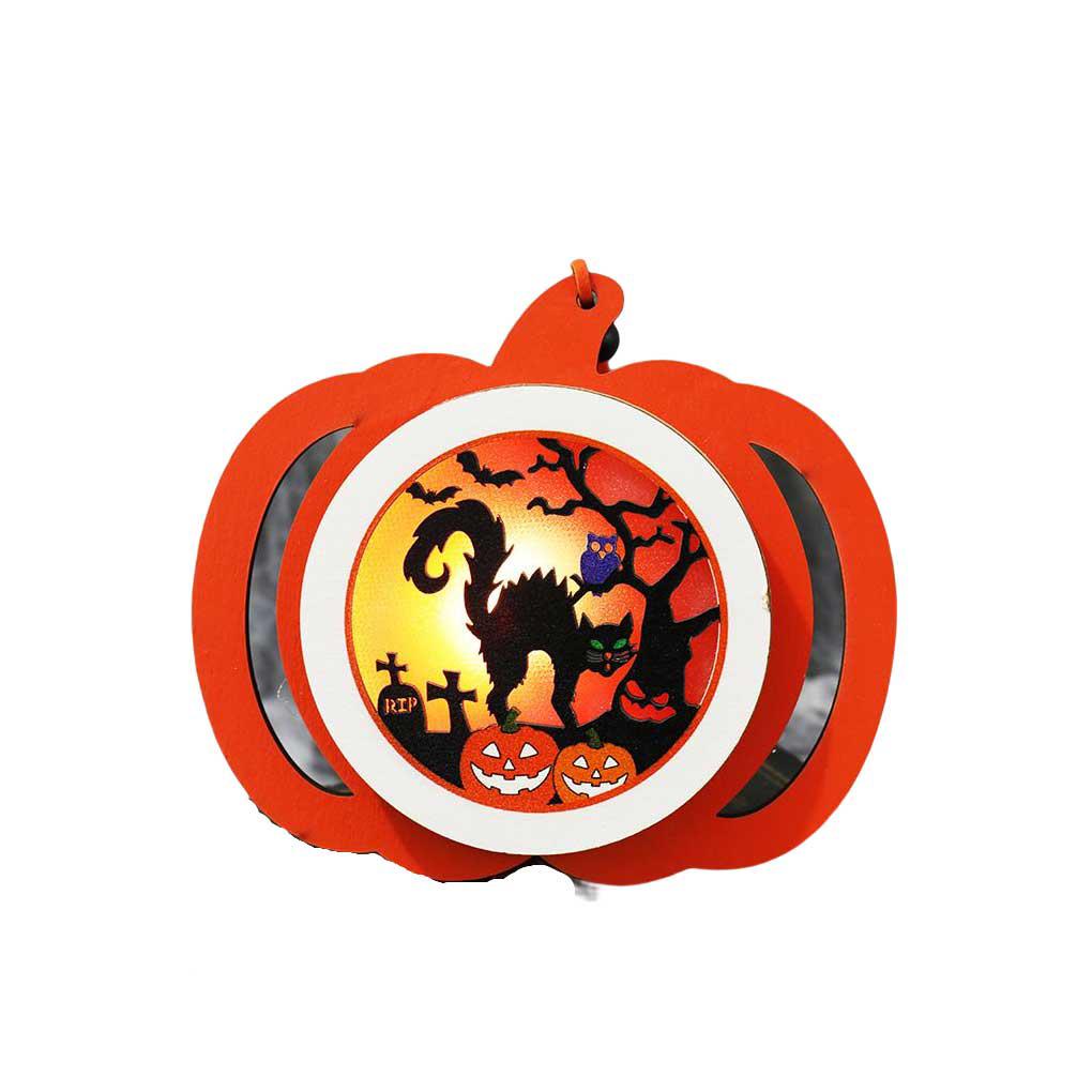Giới thiệu Đèn Trang Trí Halloween Hình Bí Ngô Bằng Gỗ Trọng Lượng Nhẹ Có Nút Điều Khiển