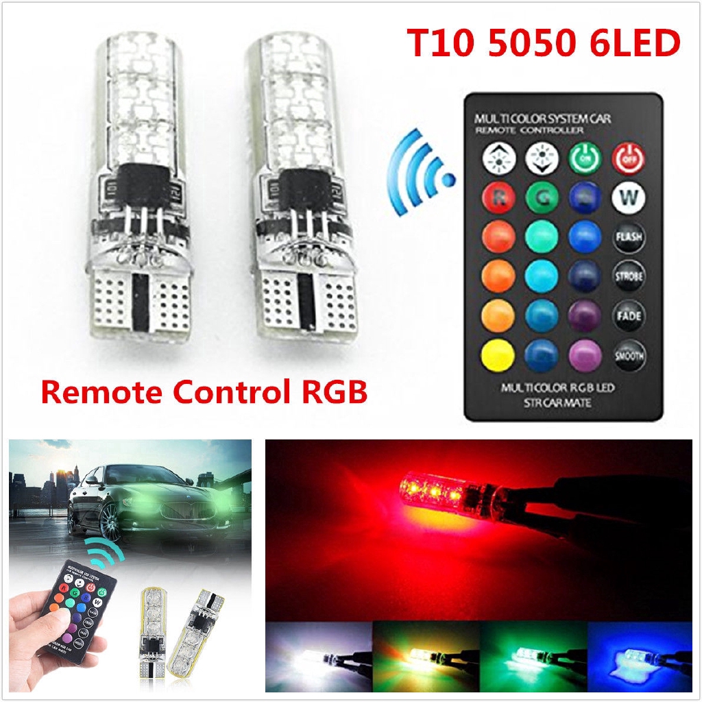 Giới thiệu Đèn xe hơi , bóng LED T10 6SMD 5050 RGB + điều khiển từ xa
