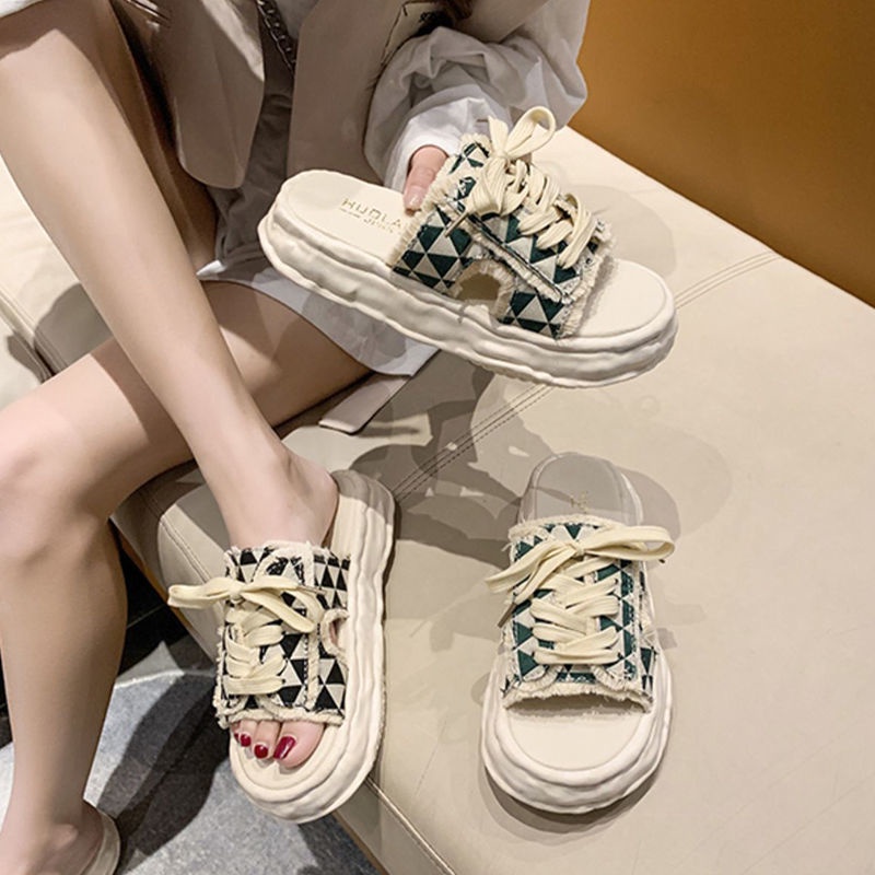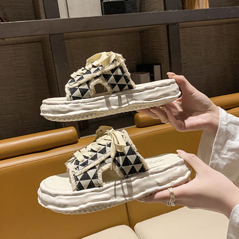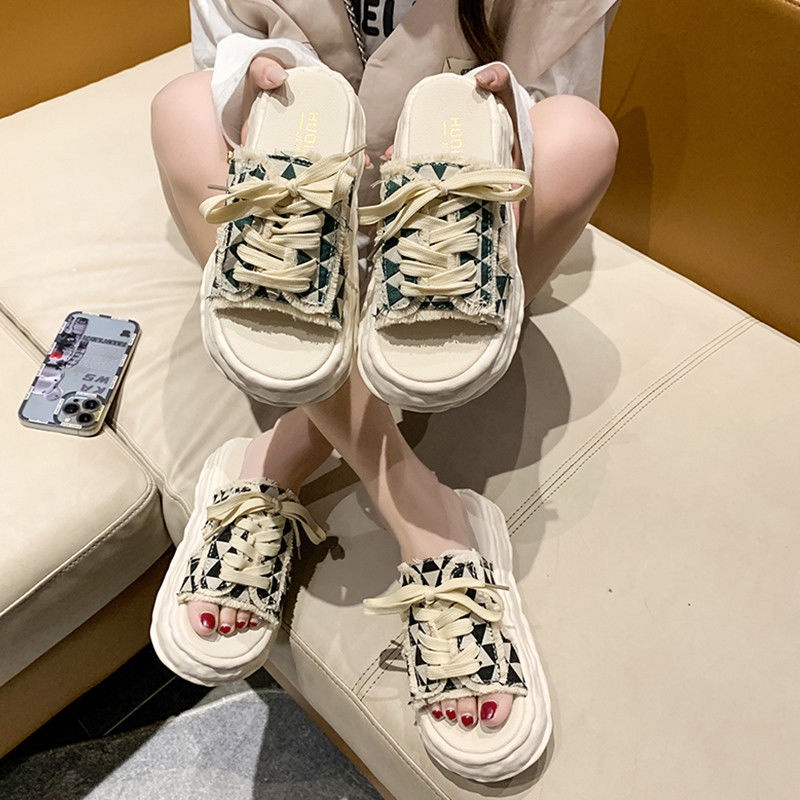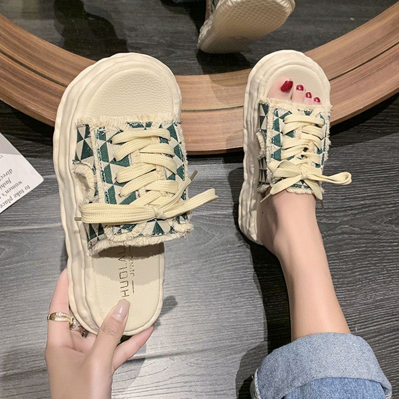 [Hoàn Tiền nhanh] Dép và dép nữ mùa hè mặc 2022 mới tất cả các tín đồ lưới nổi tiếng thời trang giày hòa tan giày thường vải dày đế nửa dép