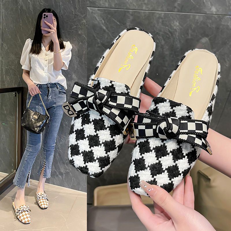 Giới thiệu Dép Bít Mũi Thắt Nơ Họa Tiết Caro Thời Trang Nữ