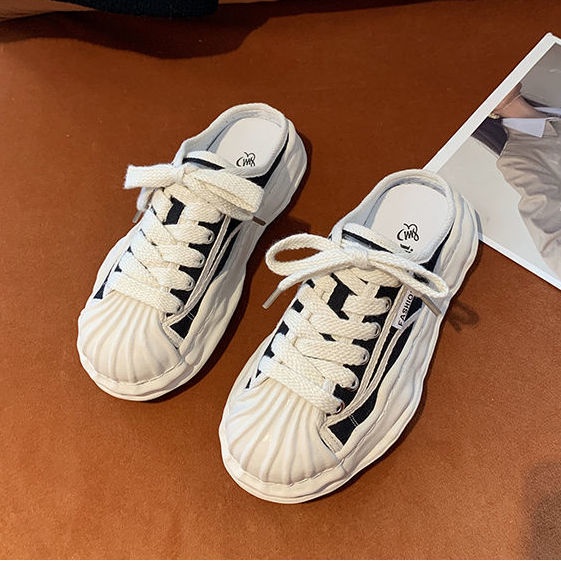 [Hoàn Trả Gói vận chuyển] Một nửa dép nữ vỏ ngón chân hai mang lưới màu đỏ nửa dép vải nóng giày tất cả phù hợp Baotou một nửa giày hỗ trợ giày lười