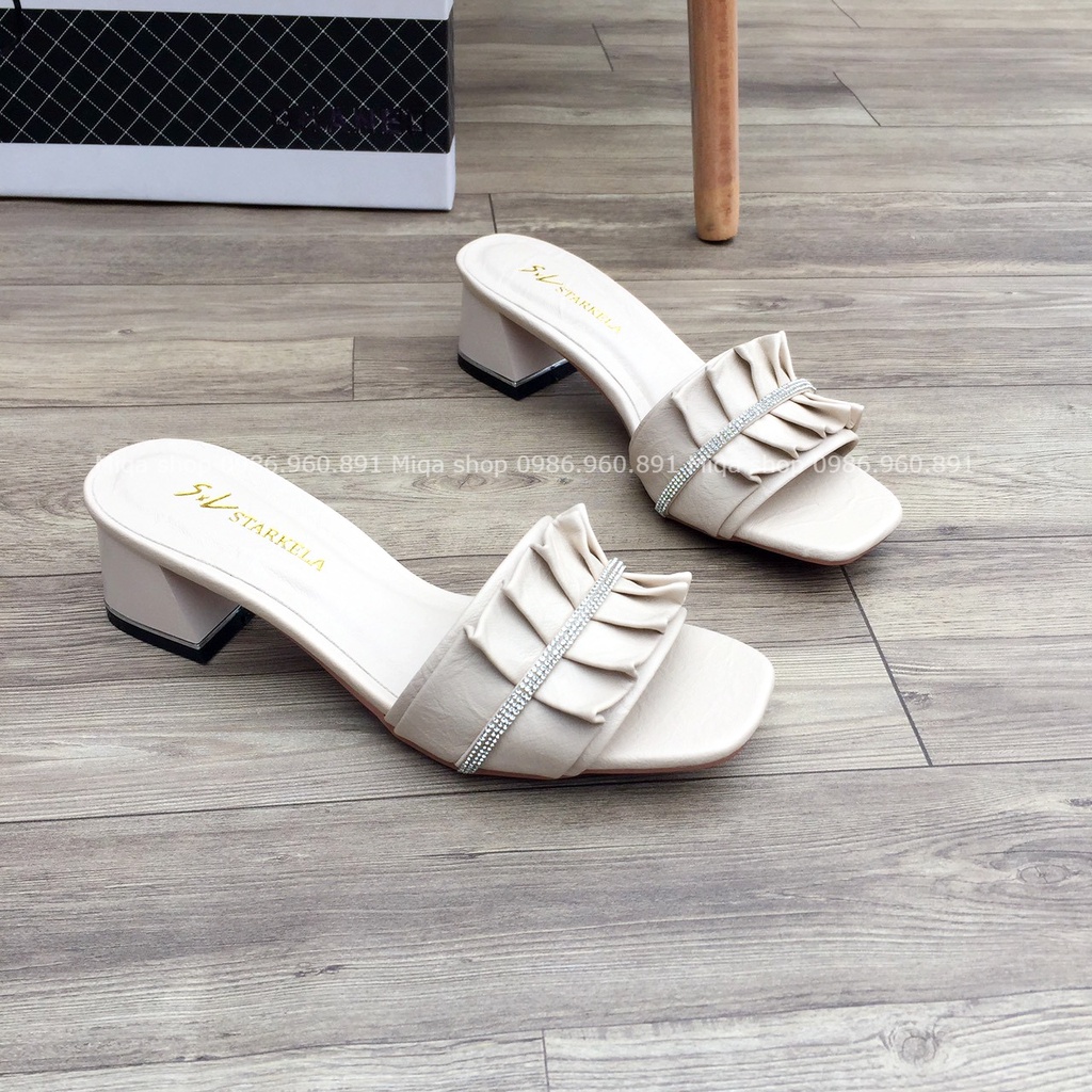 Dép cao gót nữ gót vuông quai ngang siêu hot cao 4p - Guốc cao gót da nhúm đính đá siêu xinh Chất liệu: Da mềm, Quai nhún đính đá, nổi bật. Đi lên chân cực lung linh ạ. Đế lót cao su cực êm, không gây tiếng ồn khi di chuyển - Size: 35-39 - Đế vuông cao 4cm, dễ đi, kiểu dáng cơ bản, dễ kết hợp đồ, không lo lỗi mốt, - Màu kem, đen - Ảnh thật 100% , hàng đảm bảo như hình. - Mẫu mã mới nhất. Cam kết đổi trả- hoàn tiền 100% trong vòng 7 ngày khi hàng lỗi( gãy đế, bể đế,rạn nứt da..) - hàng không giống ảnh- giao nhầm hàng Shop nhận đổ buôn số lượng lớn, nhập sỉ tận gốc 0986.960.891 Miqa store xin gởi tới Quý Khách Hàng lời chúc cho sức khỏe, hạnh phúc và thật nhiều thành công. Nhằm đáp ứng nhu cầu thời trang giày của khách hàng, Miqa store liên tục cung cấp ra thị trường rất nhiều sản phẩm giày chất lượng, mẫu mã đa dạng và style mới nhất... mang đến cho các bạn cảm giác mạnh mẽ, tự tin, cá tính Miqa store luôn mong muốn mang lại cho bạn cảm giác thoải mái với những kiểu giày thời trang đủ loại cho các bạn trẻ. Khi mua hàng ở shop chúng tôi, quý khách sẽ hoàn toàn yên tâm về số lượng cũng như chất lượng sản phẩm và sự phục vụ. Hàng y hình từ kiểu dáng đến chất liệu