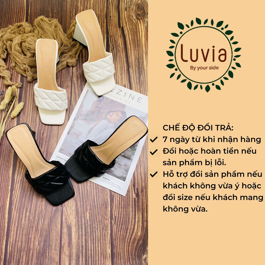 Giới thiệu Dép cao gót tam giác 9 phân quai ngang họa tiết Luvia 29CG