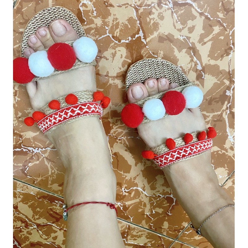 Dép cói tone trắng đỏ phối viên pompomDép cói tone trắng đỏ phối viên pompomDép cói tone trắng đỏ phối viên pompomDép cói tone trắng đỏ phối viên pompom Giá TOWELI