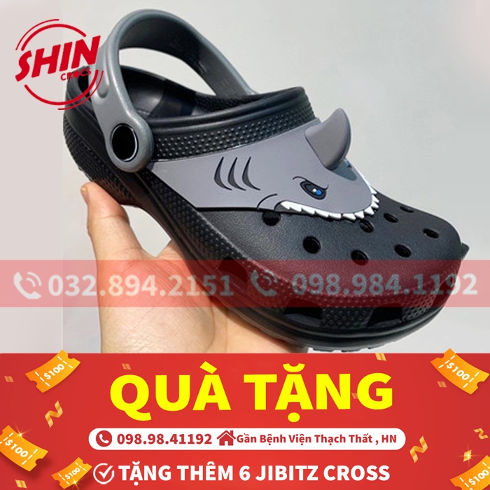 Giới thiệu dép cross trẻ emFREESHIPdép cross cho bé họa tiết bé cá mập MAITHNS12 tặng thêm 6jibitz cross