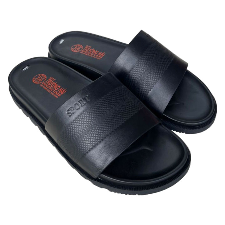 Giới thiệu Dép da nam quai ngang 1 bản da bò cao cấp màu đen Trường Hải DN165