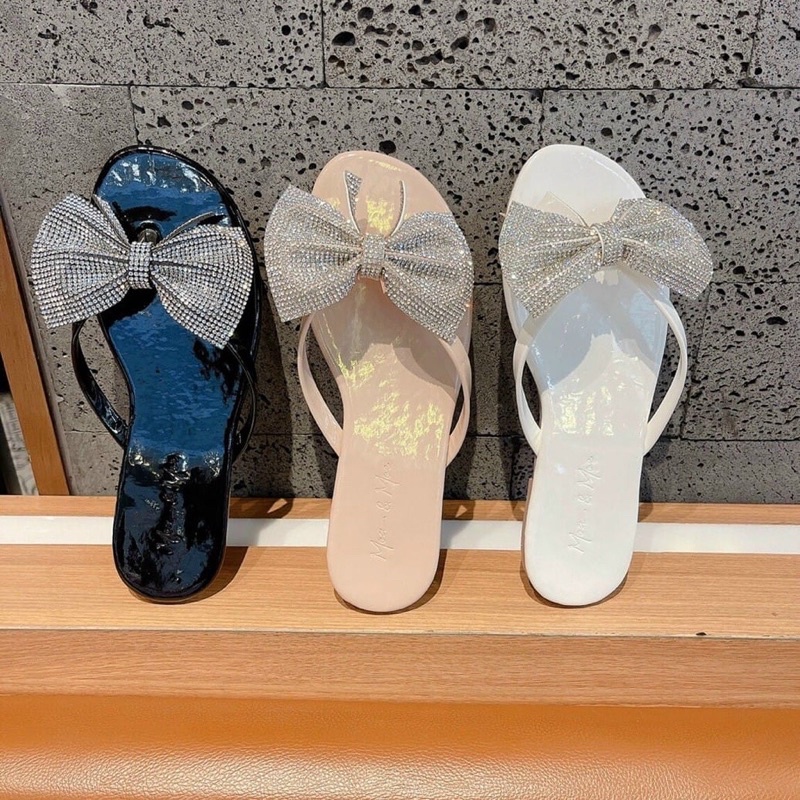 Giới thiệu Dép kẹp đế bằng H2STORE phối nơ kết xoàn siêu sáng sang trọng quý phái.