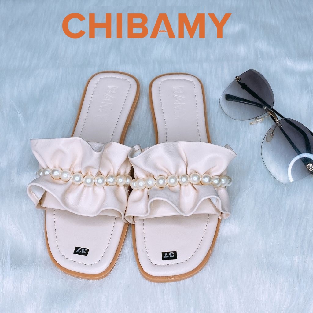 BaMy Shoes - Tủ Giày Tuổi Trẻ Dép lê nữ nhún nơ bèo đính ngọc châu, dép ulzzang phong cách tiểu thư đi biển, đi chơi cute - BaMy Shoes
