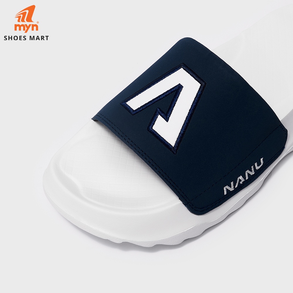 Giới thiệu Dép Nanu N03 Navy white logo chữ A thêu viền, quai da lộn 2 lớp, đế chunky 4cm