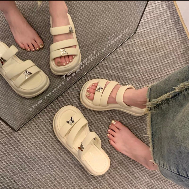 Giới thiệu Dép nữ 3 quai đế 7cm đính hình BUTTERFLY