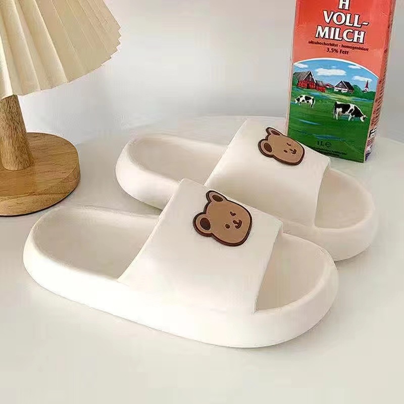 Dép nữ bánh mì hình gấu xinh quai ngang đế bằng in hình gấu A139 Warm&Cute