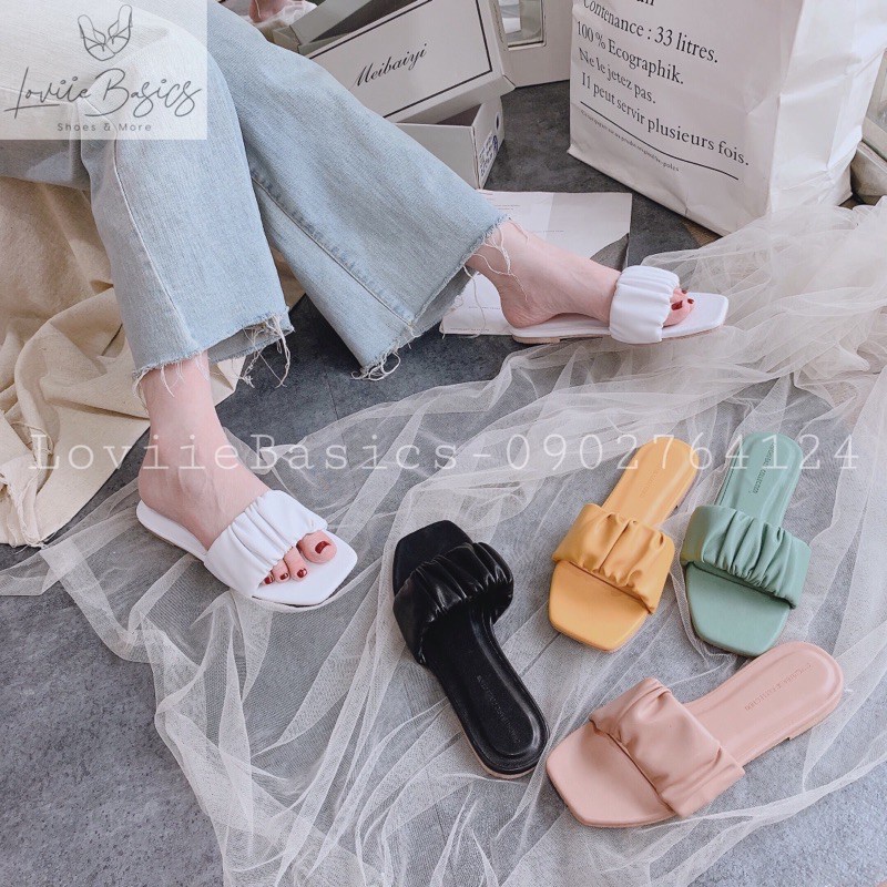 Giới thiệu DÉP NỮ CAO CẤP LOVIIE BASICS - DÉP LÊ QUAI CHÉO NHÚM BÈO ĐẾ THẤP - GIÀY NỮ ĐẾ BẰNG QUAI THUN MŨI TRÒN 2P D200574 D220420