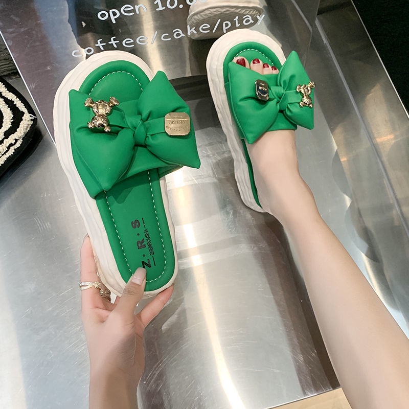 [Trả Hàng trọn gói] Nơ kiểu nổi tiếng lưới dày - đế dép nữ mùa hè mặc 2022 thời trang mới tăng phong cách cổ tích dép chống trượt