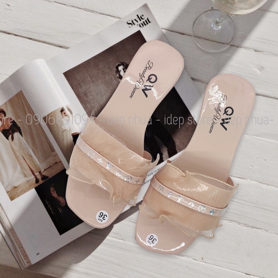 DÉP NỮ QUAI NGANG BÈO NHÚN NHÚM ĐÍNH CƯỜM