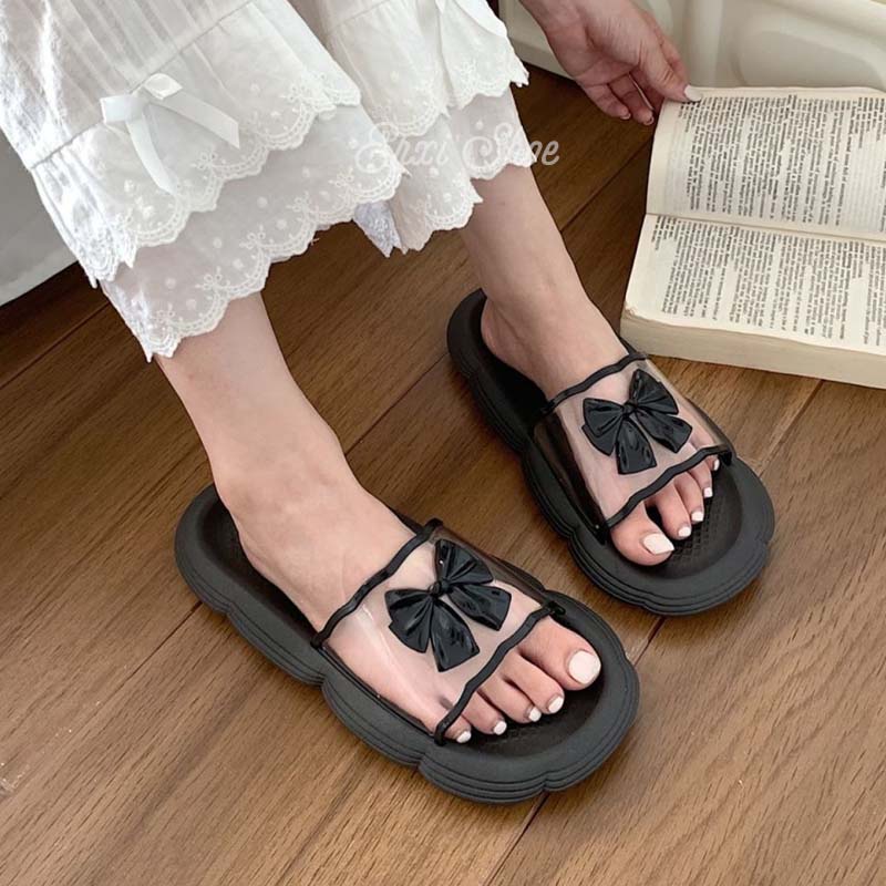 Giới thiệu Dép Nữ Quai Ngang Trong Suốt Đính Nơ Thời Trang