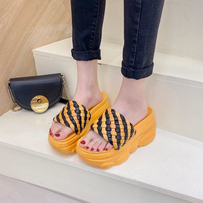 [Hoàn Tiền nhanh] Dép nổi tiếng lưới nữ mặc mùa hè 2021 đáy dày mới tăng thêm dệt thời trang dép bệt chống trượt