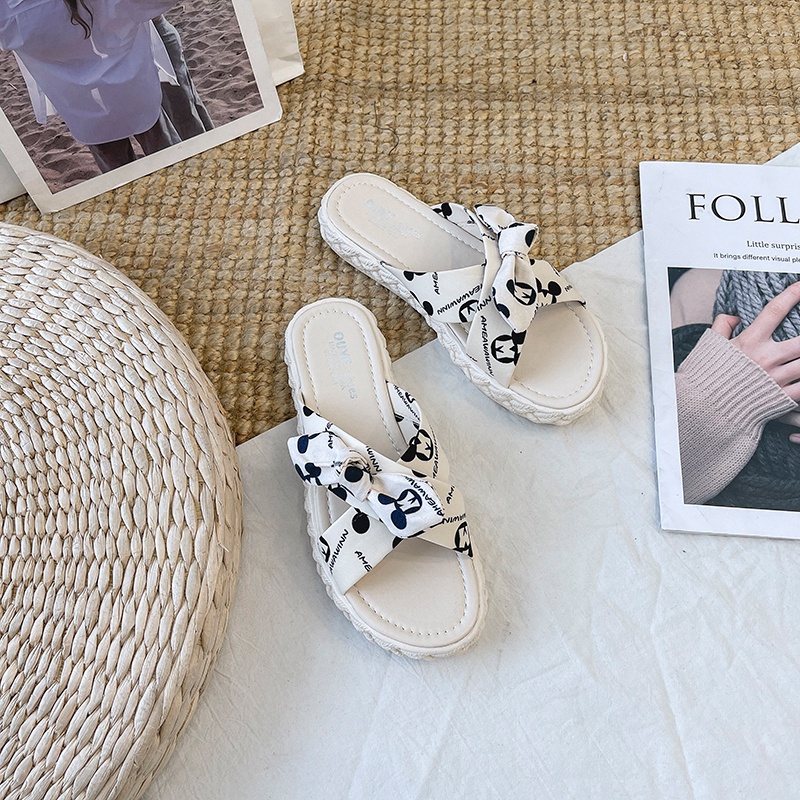 Giới thiệu Dép quai ngang IELGY đế bằng in họa tiết hoạt hình đơn giản thời trang cho nữ