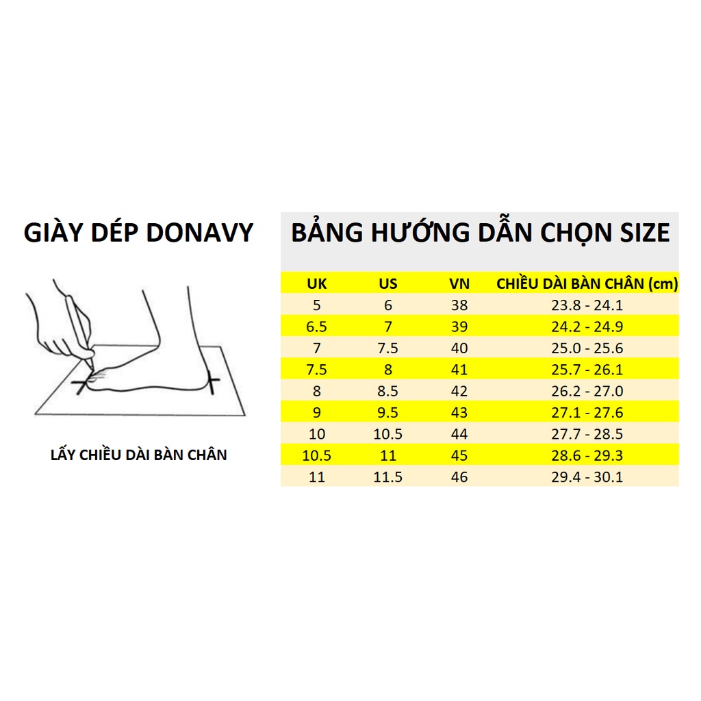 ❤️ Địa chỉ shop: 42 đường 18D, Phường Bình Hưng Hòa A, Bình Tân, HCM. Hotline: 03579.80077 Hướng dẫn bảo quản: - Tránh tiếp xúc dầu, hóa chất - Hạn chế phơi dưới ánh nắng trực tiếp - Sử dụng khăn mềm làm sạch bụi bẩn bám trên dép - Cất giữ sản phẩm nơi thoáng mát để giữ gìn chất lượng tối ưu. Để chọn được size giày, dép phù hợp, bạn có thể tham khảo cách chọn size ứng với chiều dài bàn chân (cm) dưới đây: - Size 38: 23.8 – 24.1 - Size 42: 26.2 – 27.0 - Size 39: 24.2 – 24.9 - Size 43: 27.1 – 27.6 - Size 40: 25.0 – 25.6 - Size 44: 27.7 – 28.5 - Size 41: 25.7 – 26.1 - Size 45: 28.6 – 29.1 Bạn có thể đo chiều dài bàn chân chính xác nhất bằng cách đo khoảng cách từ mũi ngón chân cái đến gót chân theo một đường thẳng.