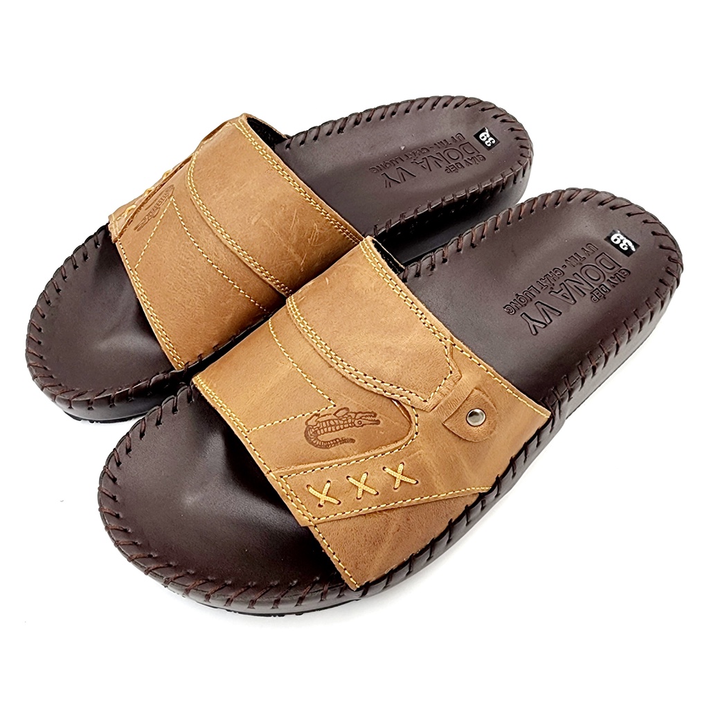 Giày Dép Nam > Xăng-đan và Dép > Xăng-đan > Dép Quai Ngang Nam Da Bò Thật 100% DONAVY Cao Cấp, Bản In Chìm Cá Sấu Sắc Nét ,Khâu Quai Chắc Chắn Bao Đi Nước D.CS3X