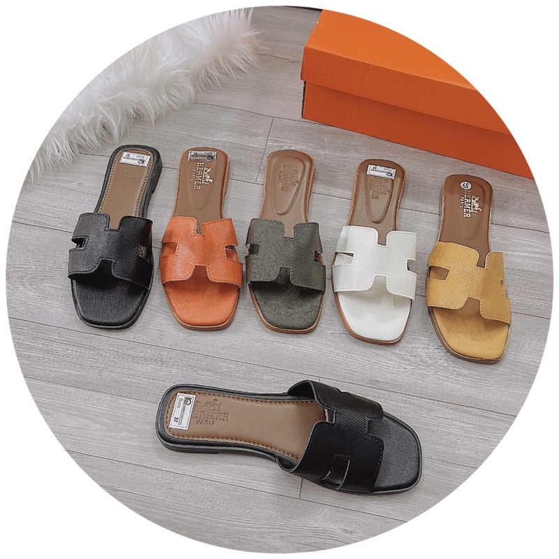Giới thiệu Dép quai ngang nữ, Dép H nữ da xước đế nâu hàng đẹp lắm luôn