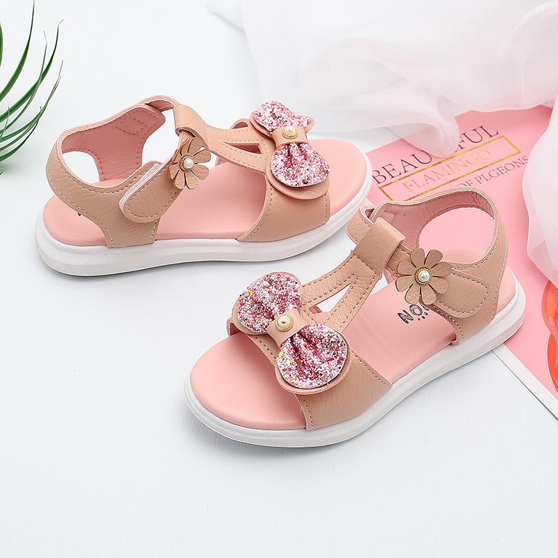 Giới thiệu Dép sandal bé gái công chúa cao cấp quai ngang gắn nơ nhũ cho trẻ em đi học 3-13 tuổi [SDG05]