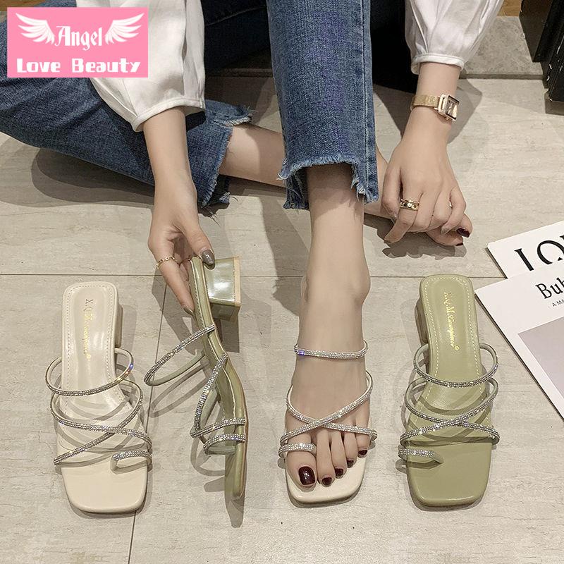 Giới thiệu Dép Sandal Gót Dày Hở Ngón Đính Đá Thời Trang Mùa Hè Dành Cho Nữ 2022