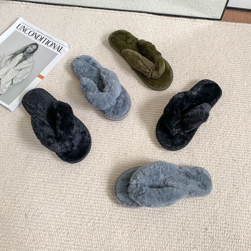 Dép thời trang quai kẹp đế bằng, dép xỏ ngón chống trơn trượt, lông mềm mịn [FULLBOX]