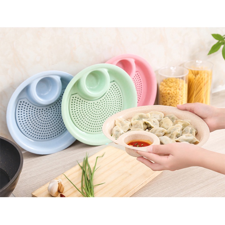 Đĩa để nước chấm hongkong_store sieure888 đĩa để nước chấm lúa mạch thoát nước 2in1