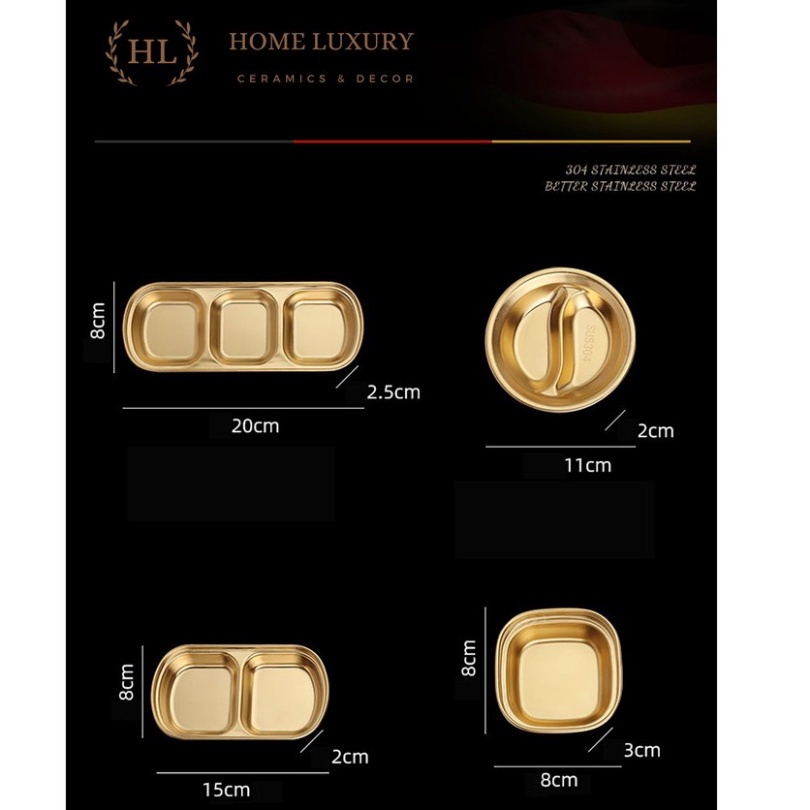 Nhà Cửa & Đời Sống > Đồ dùng phòng ăn > Dĩa > Đĩa đựng phụ gia inox không gặm nhấm 304 | Khay phụ gia Vàng Inox thời thượng Hàn Quốc , đồ gia dụng thông minh, tiện íc