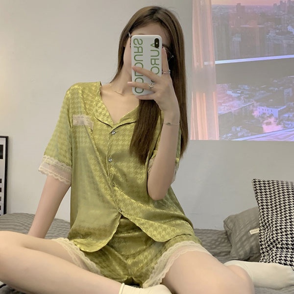 Giới thiệu DIDIKA Bộ Đồ Ngủ Ngắn Tay Bằng Lụa Phối Ren Thời Trang Dành Cho Nữ