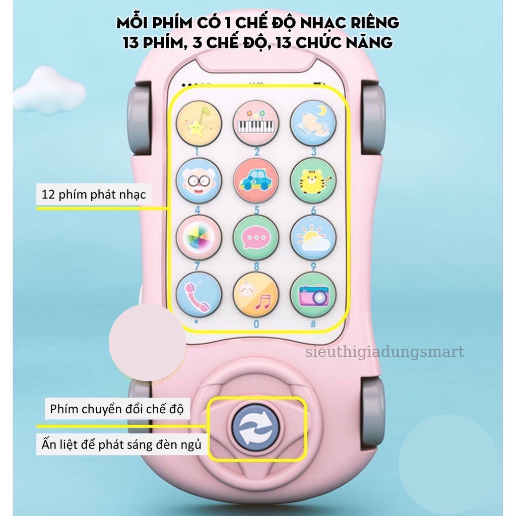 CHI TIẾT CHỨC NĂNG SẢN PHẨM: 🚗 Hàng nội địa Trung Quốc. Nhập khẩu nguyên chiếc - Chính hãng 🚗 Lấy cảm hứng từ nhân vật trong loạt phim hoạt hình bom tấn CARS. 🔰 Thiết kế kiểu dáng dễ thương, xinh xắn 🔰 Màu sắc tươi sáng, hài hòa 🔰 Bề mặt không góc cạnh 🚗 Âm nhạc và đèn phong phú, đa dạng 🔰 Song ngữ: Trung - Anh 🔰 Chuyển đổi 3 chế độ phát âm thanh. 13 nút bấm với nhiều bài hát thiếu nhi, âm thanh các hiện tượng tự nhiên (mưa, gió, sấm chớp...) 🔰 Đèn trần kết hợp âm nhạc nhẹ nhàng cho bé những giấc ngủ ngoan 🔰 Có thể điều chỉnh âm lượng 🚗 Đuôi xe làm bằng chất liệu Silicon, cho bé thoải mái cắn gặm, Massage nướu lợi. Có thể luộc trong nước sôi hoặc khử trùng bằng các loại máy chuyên dụng mà không ảnh hưởng tới chất liệu 🚗 Kích thước vừa vặn, thiết kế thông minh cho bé dễ dàng cầm nắm, vui chơi 🚗 Nhiều chức năng giúp bé phát triển trí tuệ phối hợp đa giác quan