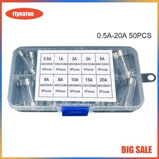 50PCS 6x30mm Fast Blow Fuse Glass Tube Fuse Assorted Mixed Kit Insurance Tube 0.5A/1A/2A/3A/5A/6A/8A/10A/15A/20A