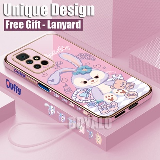 (Dây buộc miễn phí) Ốp Điện Thoại Viền Vuông Mạ Vàng Họa Tiết Thỏ Sang Trọng Cho Xiaomi Redmi 10 9 9a 9t Note 10 5G 8 7 Pro