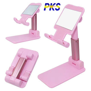 Giá đỡ điện thoại máy tính bảng có gương màu hồng để bàn có thể gập lại điều chỉnh 360