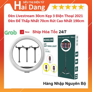 Bộ Đèn Livestream 30cm, Kẹp 3 Điện Thoại Đèn Siêu Sáng - Chân Rút Cao 190cm - Tiện Lợi - Quay Video - Chụp Ảnh