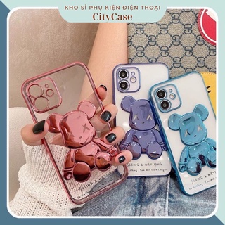 Ốp Iphone Gấu Bearbrick viền xi Hồng Tím 6/6plus/6s/6splus/7/7plus/8/8plus/x/xr/xs/Xsmax11/12/13/14/pro/max/promax/plus