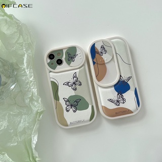 Ốp Điện Thoại Da Mềm Chống Sốc Có Nắp Trượt Bảo Vệ Camera In Hình Bướm Cho iPhone 13 12 11 Pro Max XS Max XR X