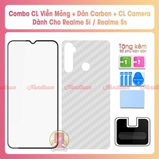 Combo Kính cường lực viền mỏng, cường lực camera và miếng dán lưng cacbon cho Realme 5i / Realme 5S