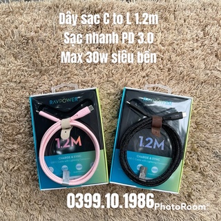 Cáp RAVPower C to L dài 1.2 Mét bọc dù siêu bền, Sạc nhanh PD 3.0 Mã RP-CB1004