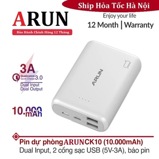 Pin Sạc Dự Phòng, CK10 - 10000MAh 3.0A Chính Hãng Arun - Siêu Bền Tiện Dụng - Thiết Kế Thông Minh Sành Điệu