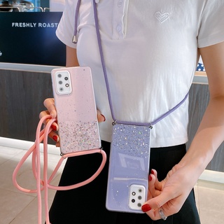 Ốp điện thoại trong suốt lấp lánh có dây đeo cổ cho Samsung Galaxy Note 20 Ultra S20 FE S21 Plus Note 10 Pro A32 4G