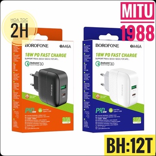 Cốc sạc nhanh BOROFONE BA46A Cao cấp, 2 cổng USB/Type-C hỗ trợ QC3.0 và PD18W, dòng điện 3A