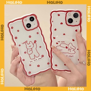 Ốp lưng iPhone 11 Ốp Lưng iPhone Màu Đen Cạnh Cong Gợn Sóng Ốp Lưng TPU Mềm Chống Sốc Bảo Vệ Camera Gấu Đỏ Dễ Thương Tương thích với iPhone 14 13 Pro max 12 Pro Max 11 xr xs 7 8Plus